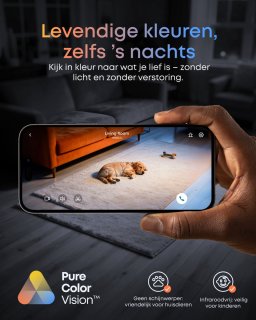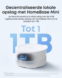 - Alle beelden veilig lokaal opgeslagen op de HomeBase Mini (microSD tot 1TB, kaart meegeleverd), dus geen maandelijkse kosten.